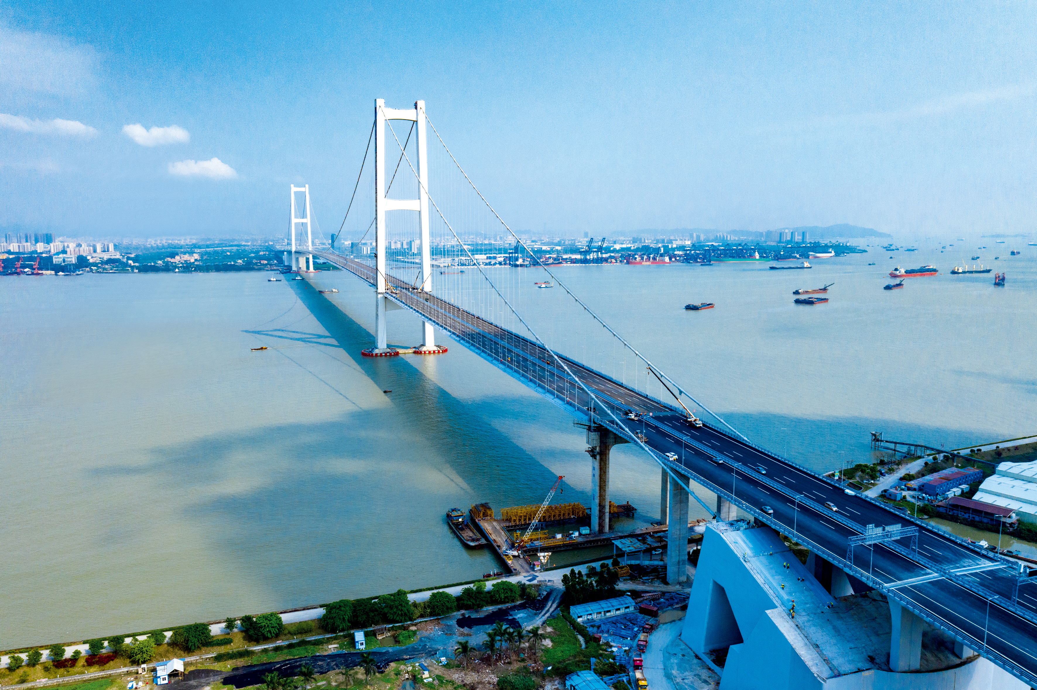南沙大桥,原称虎门二桥,是中国广东省境内一座连接广州市南沙区与东莞市沙田镇的跨海大桥,位于珠江狮子洋之上,为广州—龙川高速公路的西端部分;是继港珠澳大桥之后,珠江三角洲又一座世界级桥梁工程。